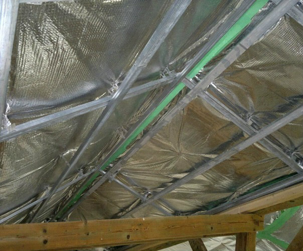 Защищает от проникновения водяного пара из помещений, снижает конденсацию влаги в слоях теплоизоляционных материалов.