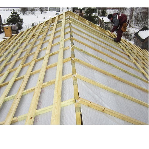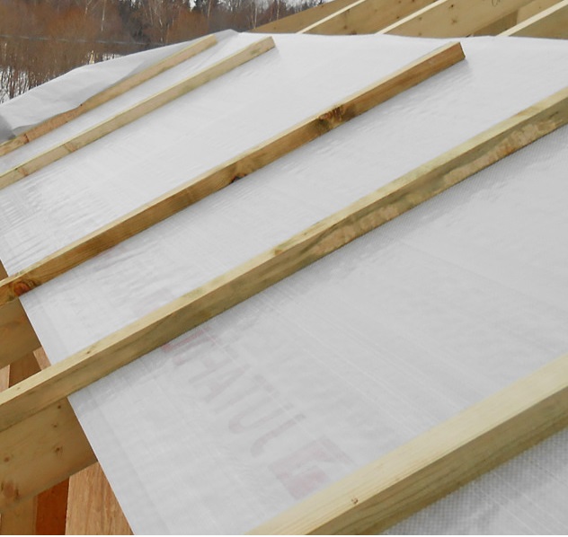 Полотно закрепляется на поверхности лаг, стропил и других материалов. Крепление происходит с помощью скоб или кровельных дюбелей.