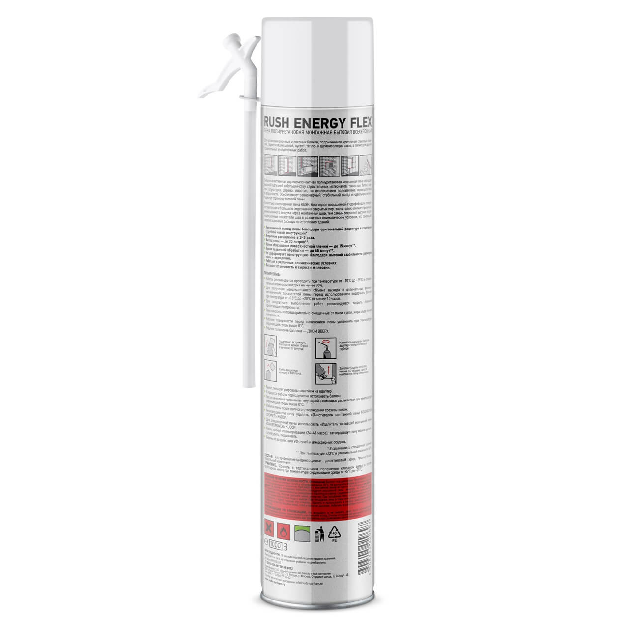Работы проводить при температуре от -10°С до + 35°С и относительной влажности воздуха не менее 50%. Для получения максимального объёма выхода и оптимальных физико-механических показателей пены перед использованием выдержать баллон при температуре от +18°С до +20°С не менее 10 часов.