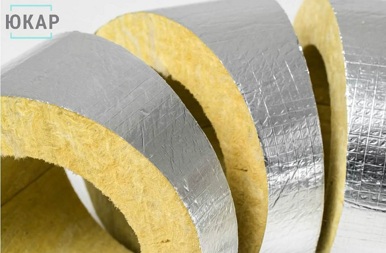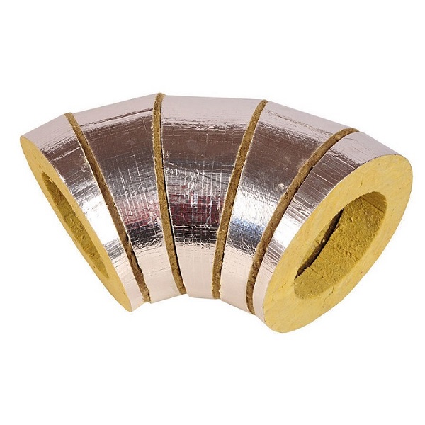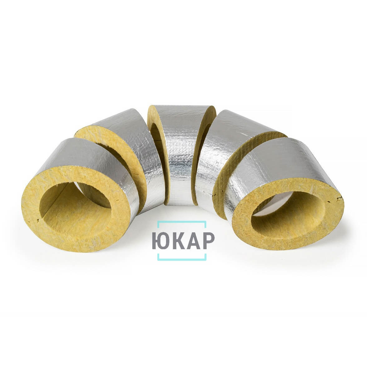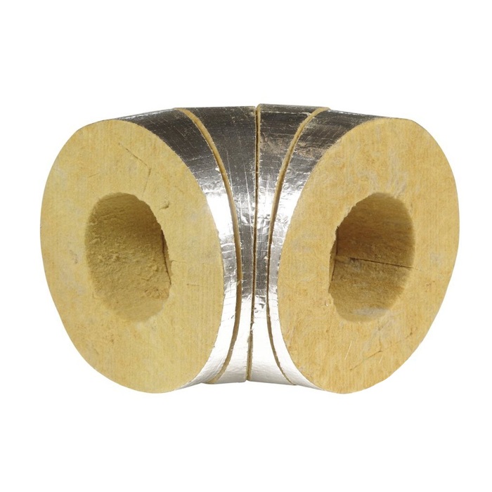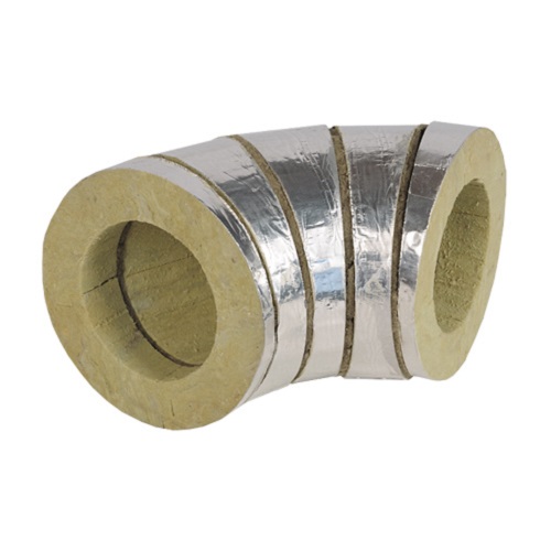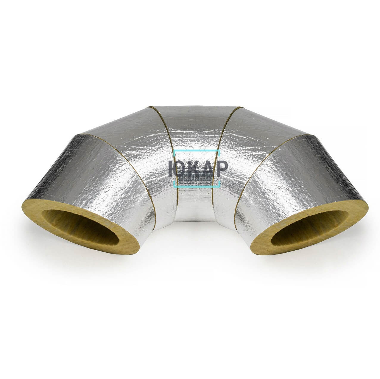 Теплоизоляционные сегменты отвода из минеральной ваты на синтетическом связующем плотностью 100 кг/м3 с покрытием армированной фольгой.