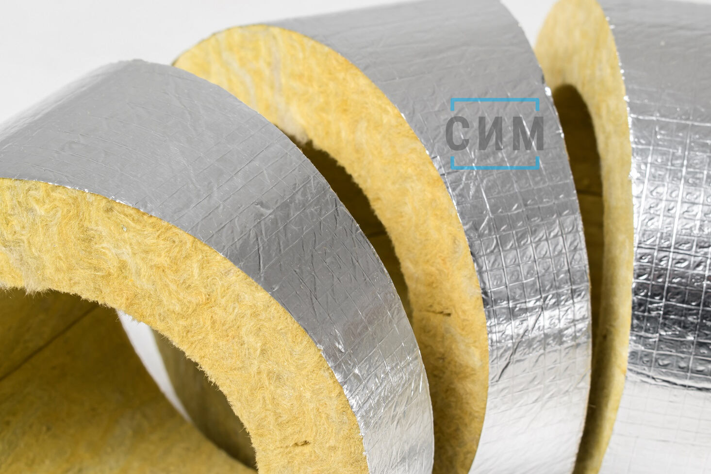 Теплоизоляционное готовое изделие из каменной ваты на синтетическом связующем плотностью 150 кг/м3 с покрытием армированной алюминиевой фольгой.
