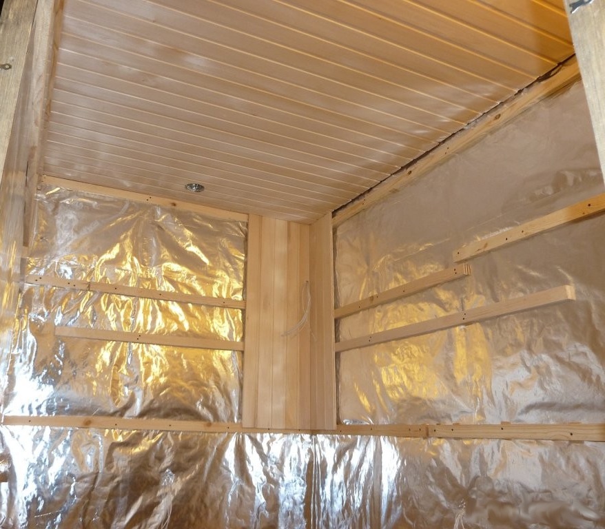 С одной стороны мат каширован слоем пароизоляции — алюминиевой фольгой.