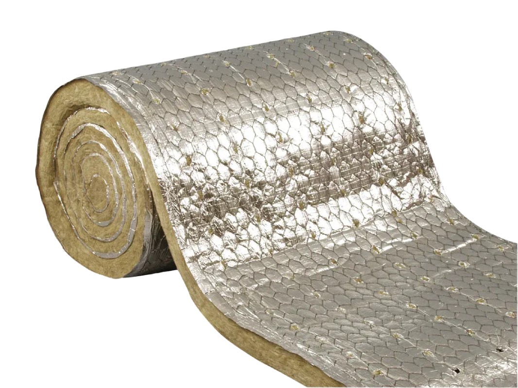 Базальтовый мат с металлической сеткой, прошит стальной проволокой.