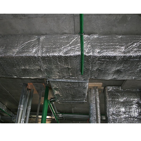 С одной стороны покрыт негорючей неармированной фольгой и металлической сеткой с ячейками 25 мм из гальванизированной проволоки.