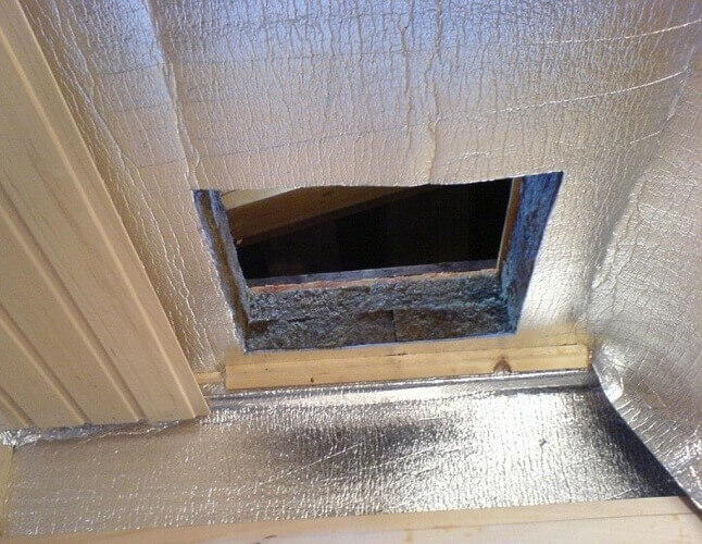 Лучистое тепло, доля которого в банях и саунах составляет до 70%, отражается от теплового зеркала полированной алюминиевой фольги внутрь помещения.
