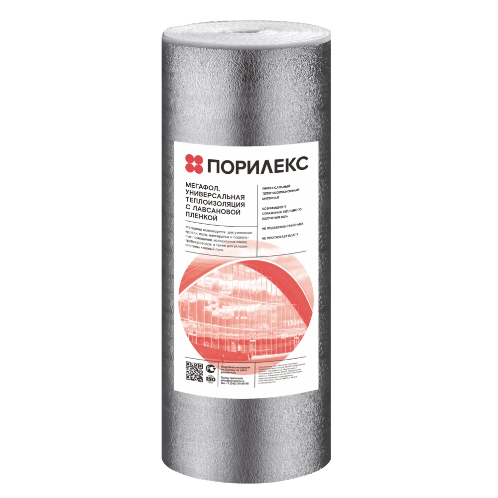 Теплоизоляционный материал с эффектом отражения из модифицированной полимерной пены. НПЭ ЛП — газовспененный несшитый полиэтилен дублированный металлизированной лавсановой плёнкой. Изготавливается по относительно простой технологии разогрева и вспенивания полиэтилена с помощью газового потока — бутана, фреона и т.д. В процессе вспенивания молекула полиэтилена никак не модифицируется. На вид НПЭ ЛП эластичный, матовый материал с металлизированным покрытием. Структура закрытопористая, размер пузырьков хорошо различим глазом 1–3 мм. Если вам сложно подобрать толщину, напишите нам WhatsApp. Наш специалист изоляционных решений поможет подобрать и купить рулон Мегафол (Порилекс НПЭ ЛП).