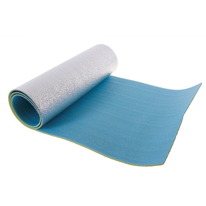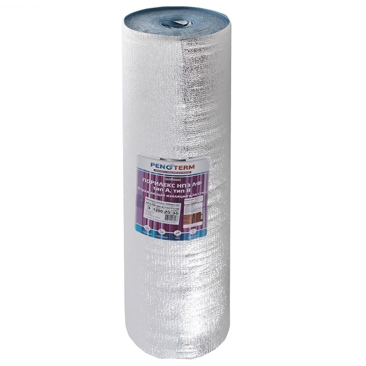 Газовспененный несшитый ламинированный полиэтилен, дублированный теплоотражающим слоем из полированной алюминиевой фольги с одной стороны.