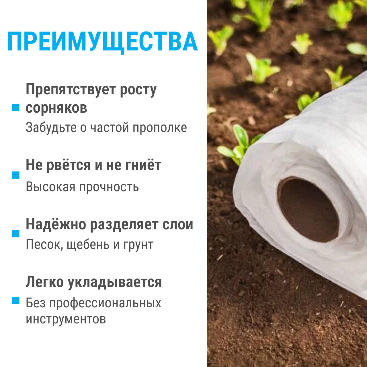 Нетканое полиэфирное полотно — прочный и долговечный материал, который идеально подходит для дачных, ландшафтных и строительных работ, используется как укрывной материал для грядок.