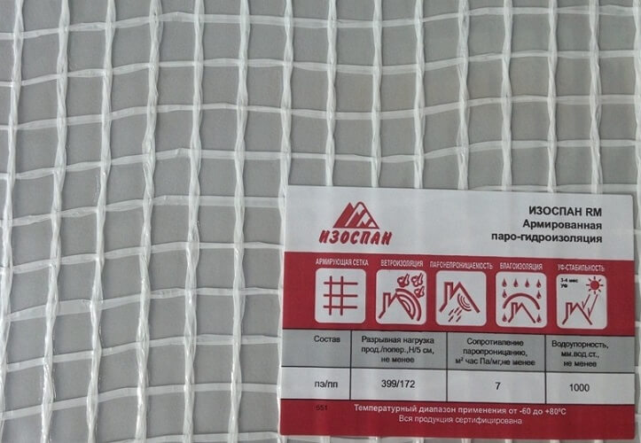 С одной стороны сетка из полипропиленовых нитей, с другой стороны полиэтиленовая плёнка. Между ними полипропиленовое нетканое полотно для высокой прочности.