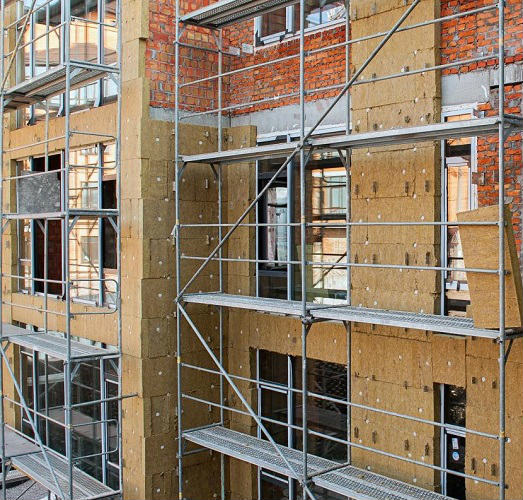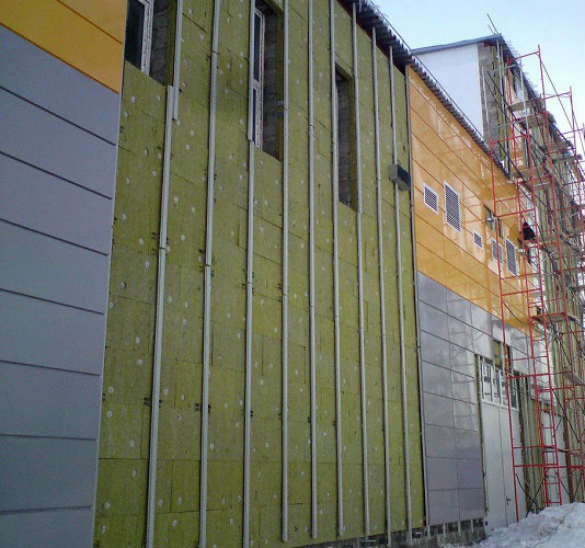 Применяется в двухслойном утеплении навесных фасадных систем с воздушным зазором в качестве верхнего слоя.