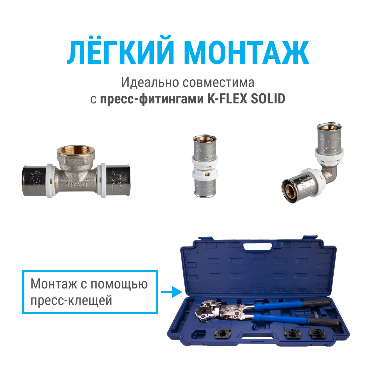 Для быстрого монтажа в ассортименте представлены пресс-фитинги, которые протестированы совместно с металлополимерной трубой K-FLEX SOLID.