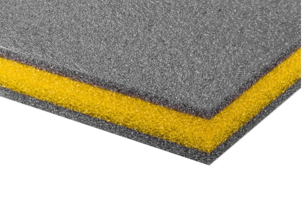 Листовой тепло-звукоизоляционный слоистый материал из полимерных слоёв вспененного полиэтилена различной плотности.