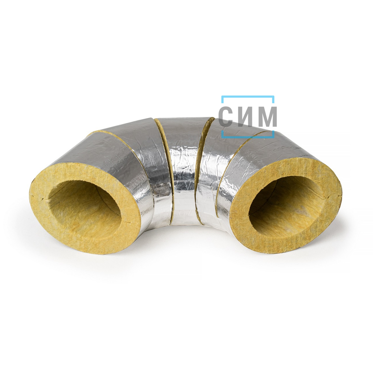 Теплоизоляционные сегменты из каменной ваты на синтетическом связующем плотностью 120 кг/м3 с негорючим покрытием из плотной фольги.