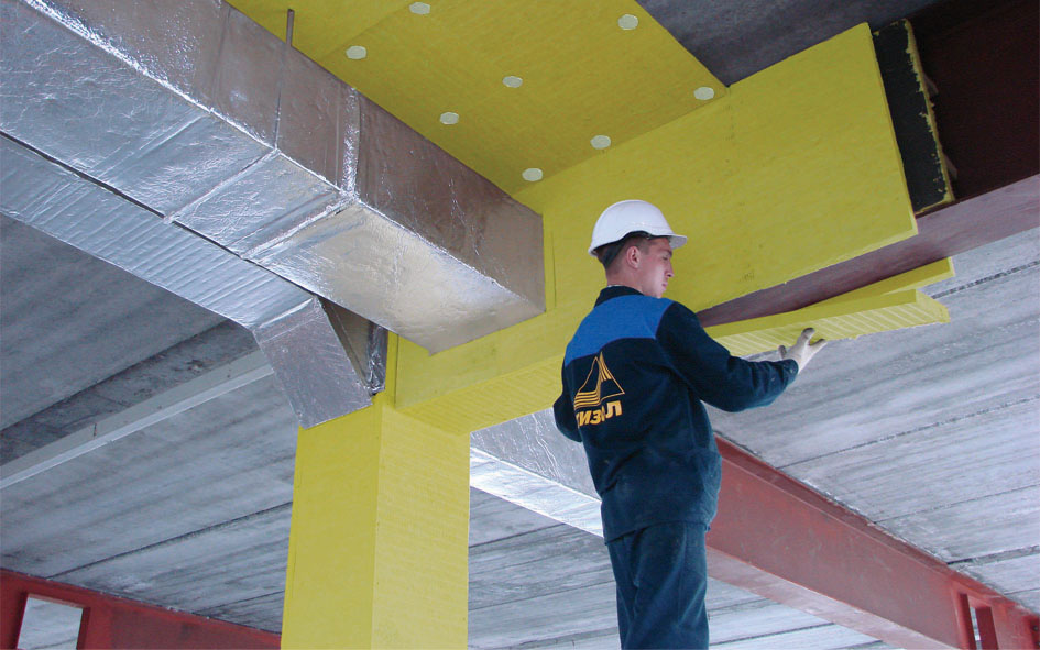 Мастика наносится на изолируемую поверхность, после чего крепятся огнезащитные плиты Тизол EURO-ЛИТ или огнезащитные маты МБОР.