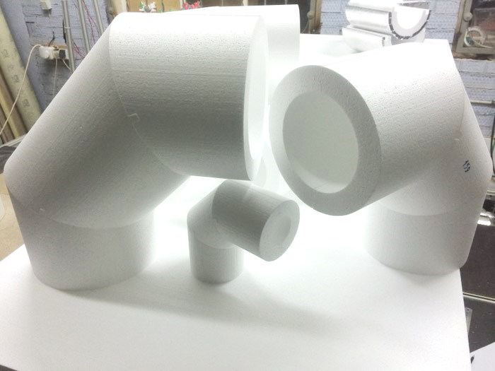 Скорлупы под углом 90°из суспензионного вспенивающегося полистирола.