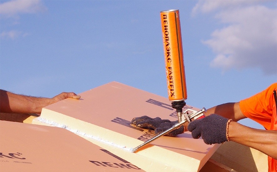 Успешно применяется в ходе монтажа теплоизоляции на фундамент, цоколь, кровлю и фасад здания, при внутренней теплоизоляции помещения, утеплении балконов и лоджий.