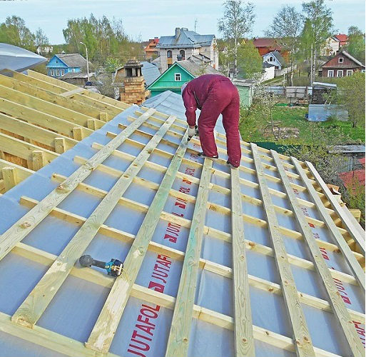 Температура монтажа от +5°С. Сторона с логотипом JUTA обращена к кровельному покрытию. Между мембраной и утеплителем обязательно должно оставаться пространство.