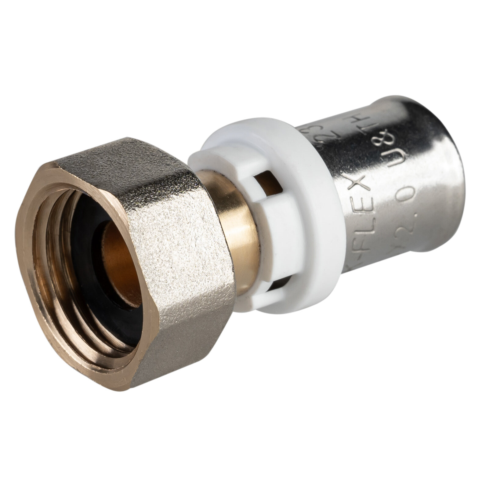 В месте соприкосновения с трубой муфта оснащена тефлоновым защитным кольцом, которое исключает гальванический контакт между алюминиевым слоем трубы и латунным фитингом.