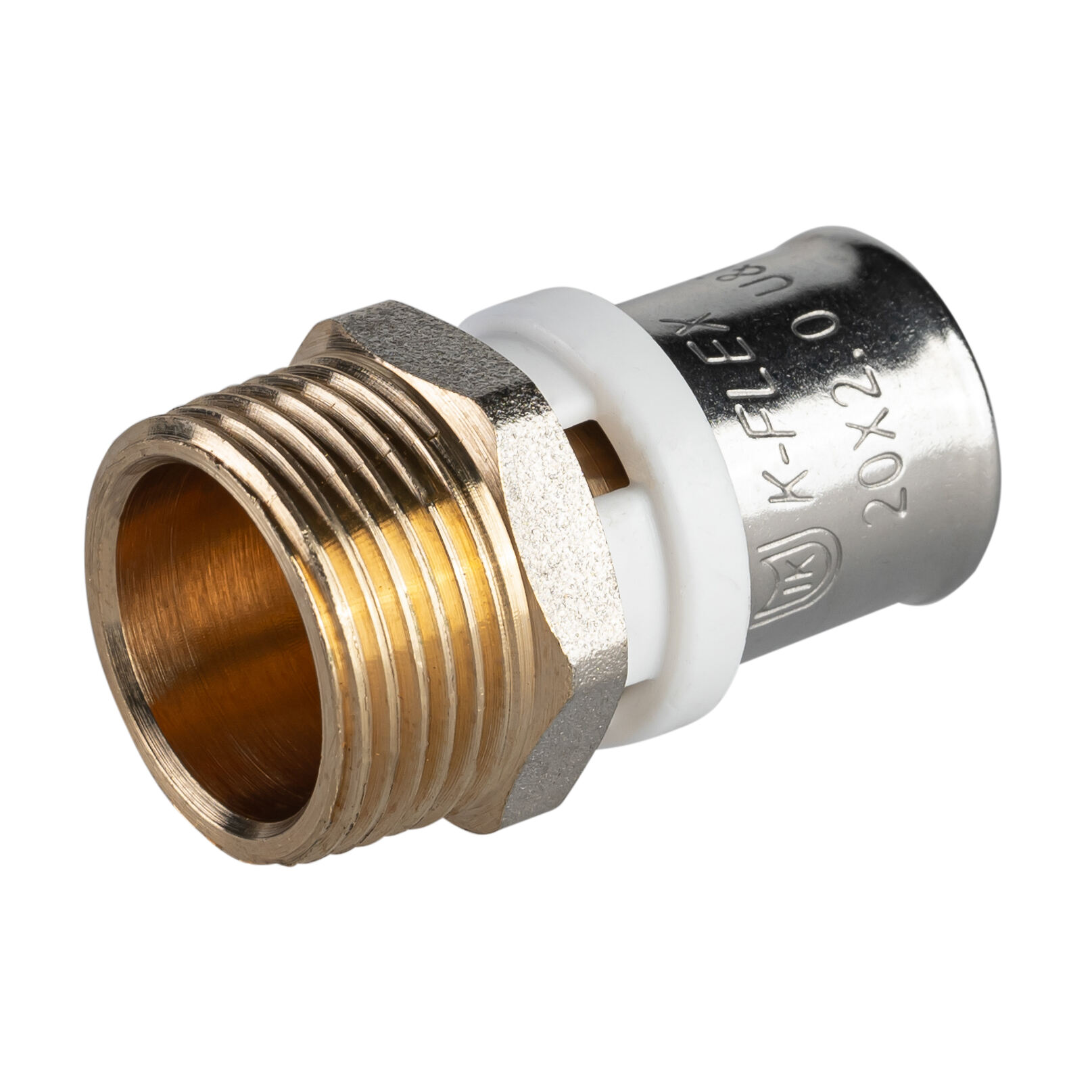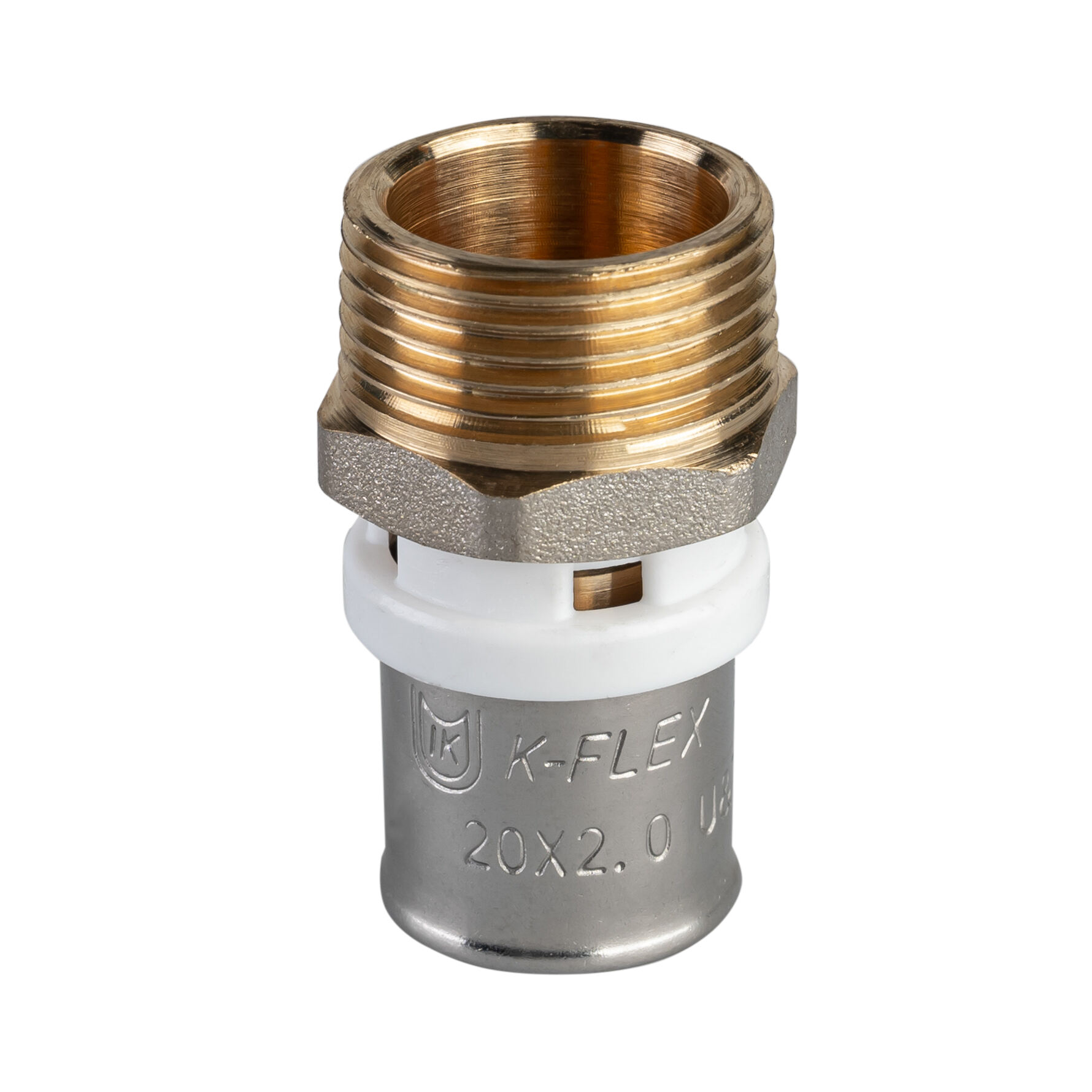 В месте соприкосновения с трубой муфта оснащена тефлоновым защитным кольцом, которое исключает гальванический контакт между алюминиевым слоем трубы и латунным фитингом.