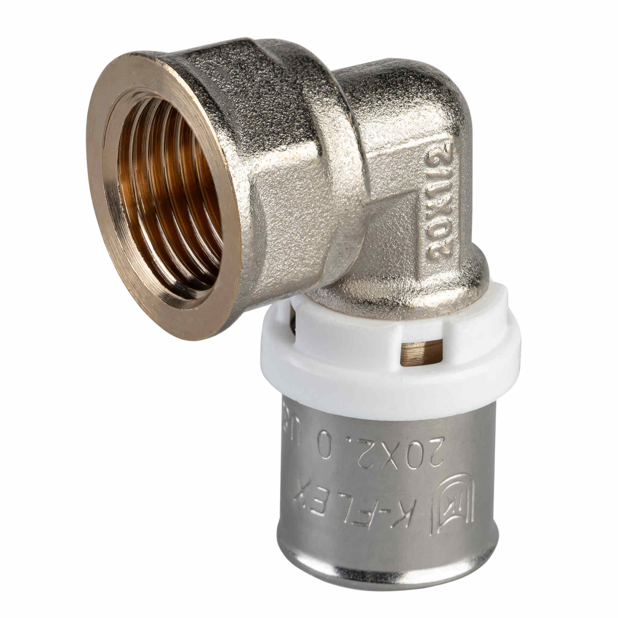 В месте соприкосновения с трубой угол оснащён тефлоновым защитным кольцом, которое исключает гальванический контакт между алюминиевым слоем трубы и латунным фитингом.