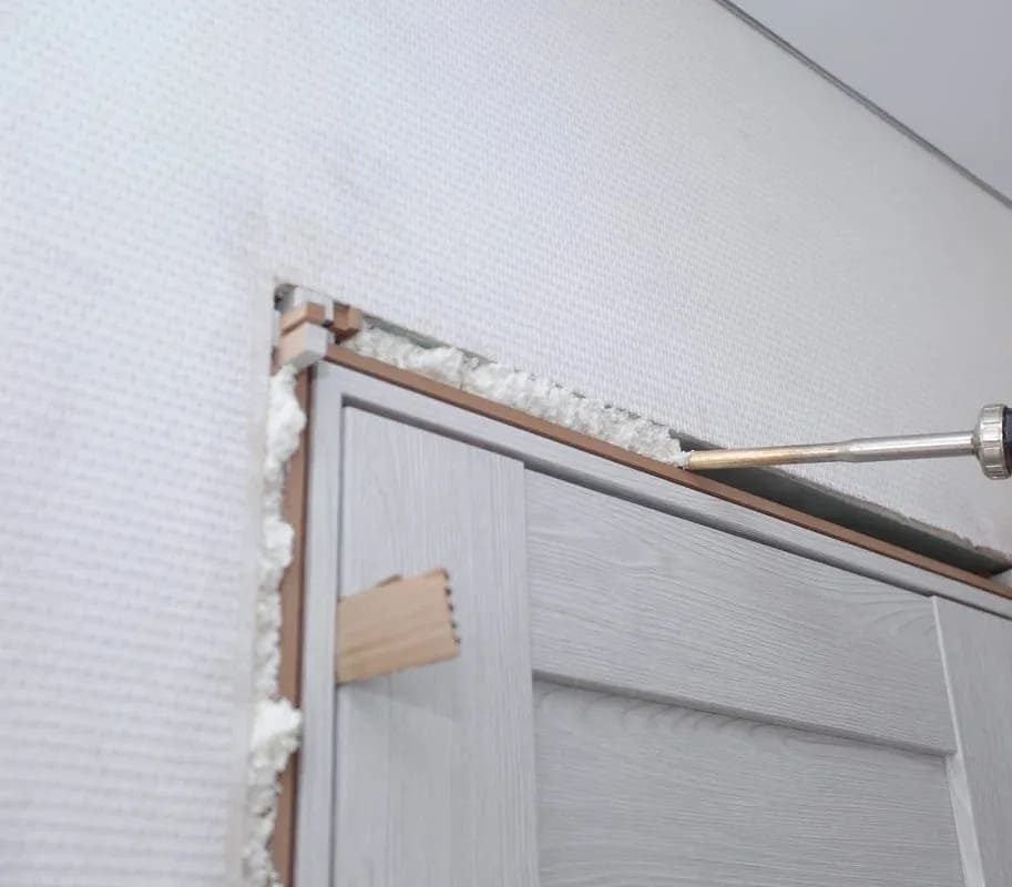 - Заполнить щель на 2/3 объёма, нанося монтажную пену снизу вверх.
