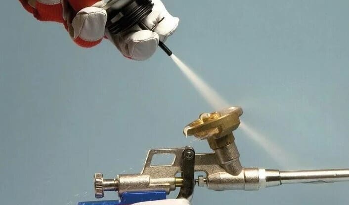 Удаление загрязнений незатвердевшей однокомпонентной полиуретановой монтажной пены.