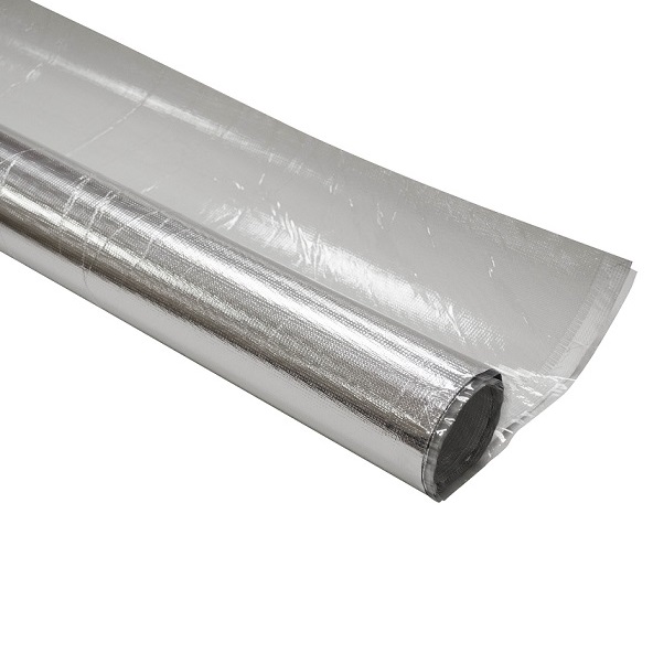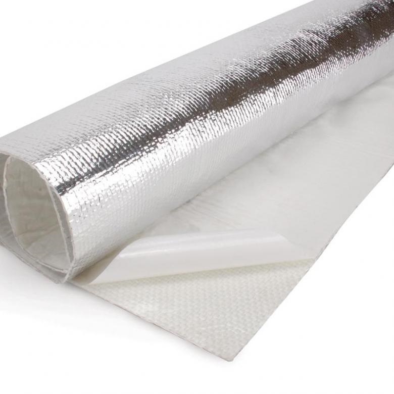 Гибкий самоклеящийся покрывной материал на основе стеклоткани 500 мкм, покрытой алюминиевой фольгой 17 мкм.