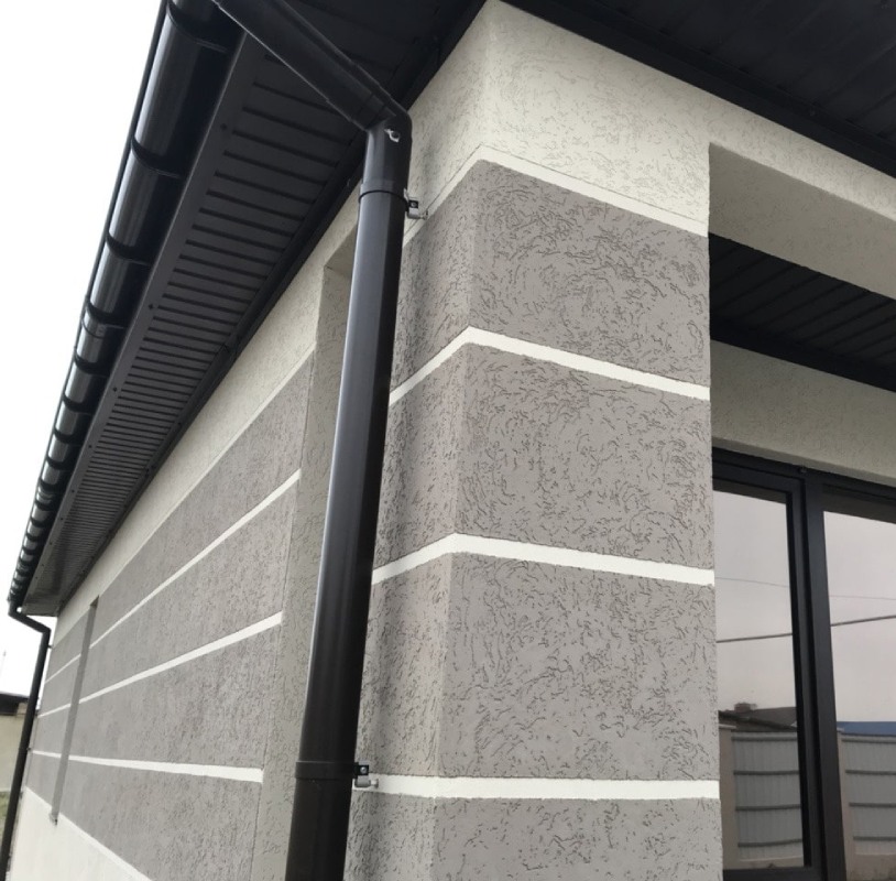 На момент нанесения штукатурки монтаж системы водостока должен быть завершён.