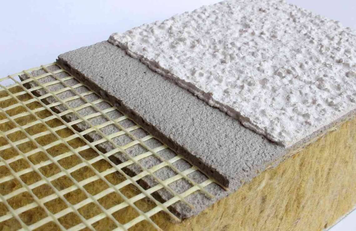Штукатурный фасад — замкнутая система с тонким слоем защитной штукатурки поверх теплоизоляционного слоя.