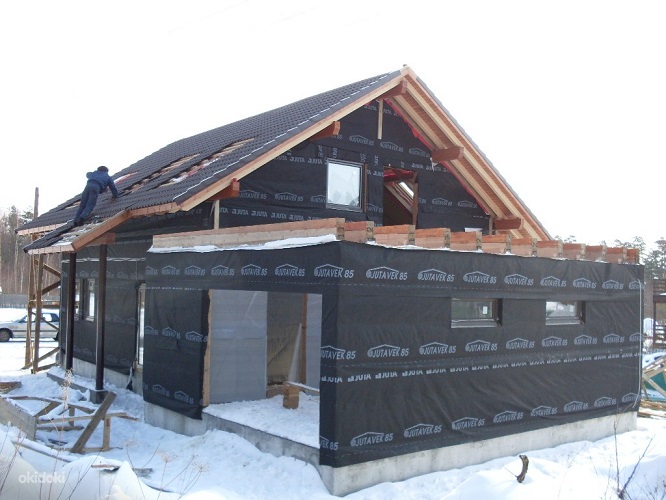 Используется для ветрозащиты фасадов зданий. Не применяется для гидроизоляции кровли.