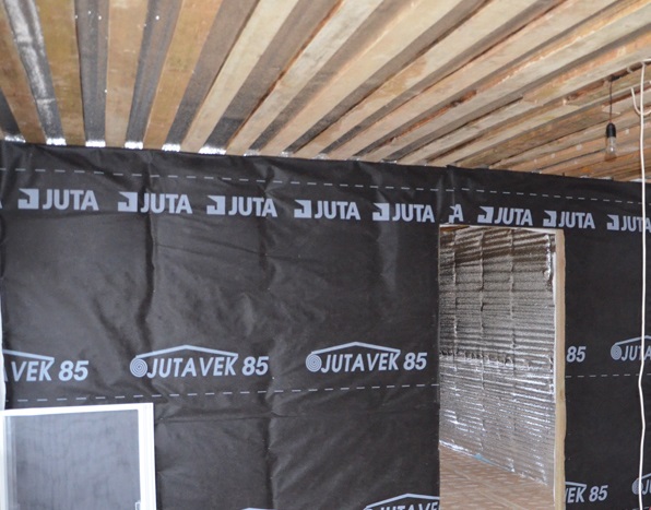 Гидроизоляционная плёнка из полипропиленового нетканого текстиля и полипропиленового супердиффузионного ветро-гидрозащитного слоя.